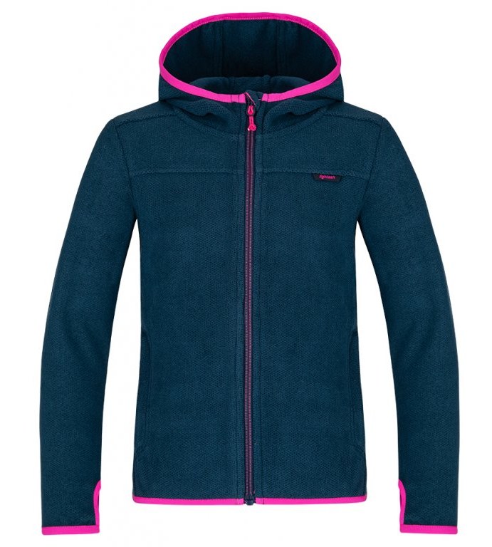 Dívčí outdoorová teplejší mikina s kapucou. Tato sportovní mikina ze středně silného jednovrstvého fleecového materiálu Lightech prakticky nenasává vodu – pokud v ní dítě zmokne, rychle uschne. Využijete od podzimu do jara, pod bundu nebo vestu.