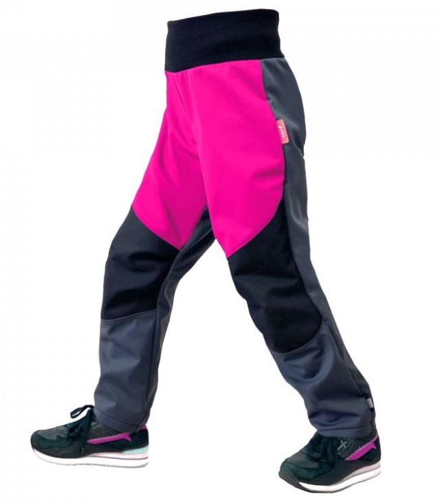 - Dívčí softshellové kalhoty Unuo Flexi s fleecem šedé s růžovou