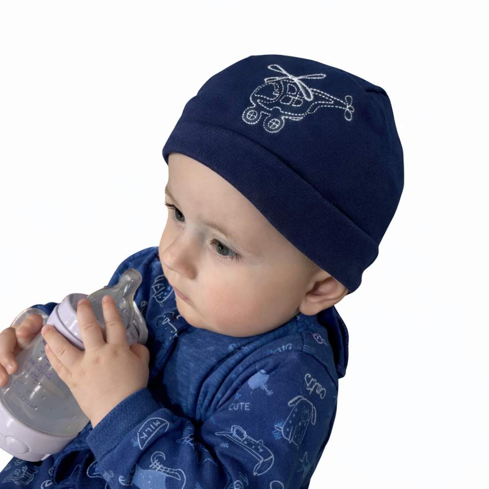 Jarní pirátka tmavě modrá s vrtulníkem obvod 45-49 cmSkladem 2 ks149 Kč/ ks123,14 Kč bez DPH