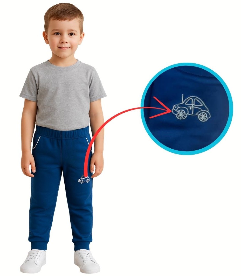 Krásné dětské tepláky pro kluky z velmi kvalitní bavlny. Tepláky necháváme šít již mnoho let u české firmy Betty Mode, která se vyznačuje kvalitní českou výrobou a maximální pečlivostí při šití. Každý kus prochází důkladnou kontrolou kvality. Díky tomu se pro tyto tepláky každým rokem vrací čím dál více maminek. Obrázek na teplácích je vyšitý. Původně jsme je nabízeli ve velikostech do vel. 128, ale jak naši malí zákazníci rostou, rozšířili jsme sortiment až do velikosti 182 (větší velikosti jsou bez výšivky).