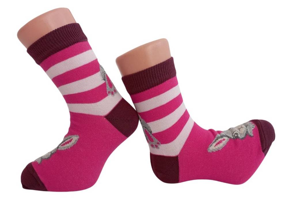 Dívčí barevné ponožky se zajíčky v tmavě růžové barvě