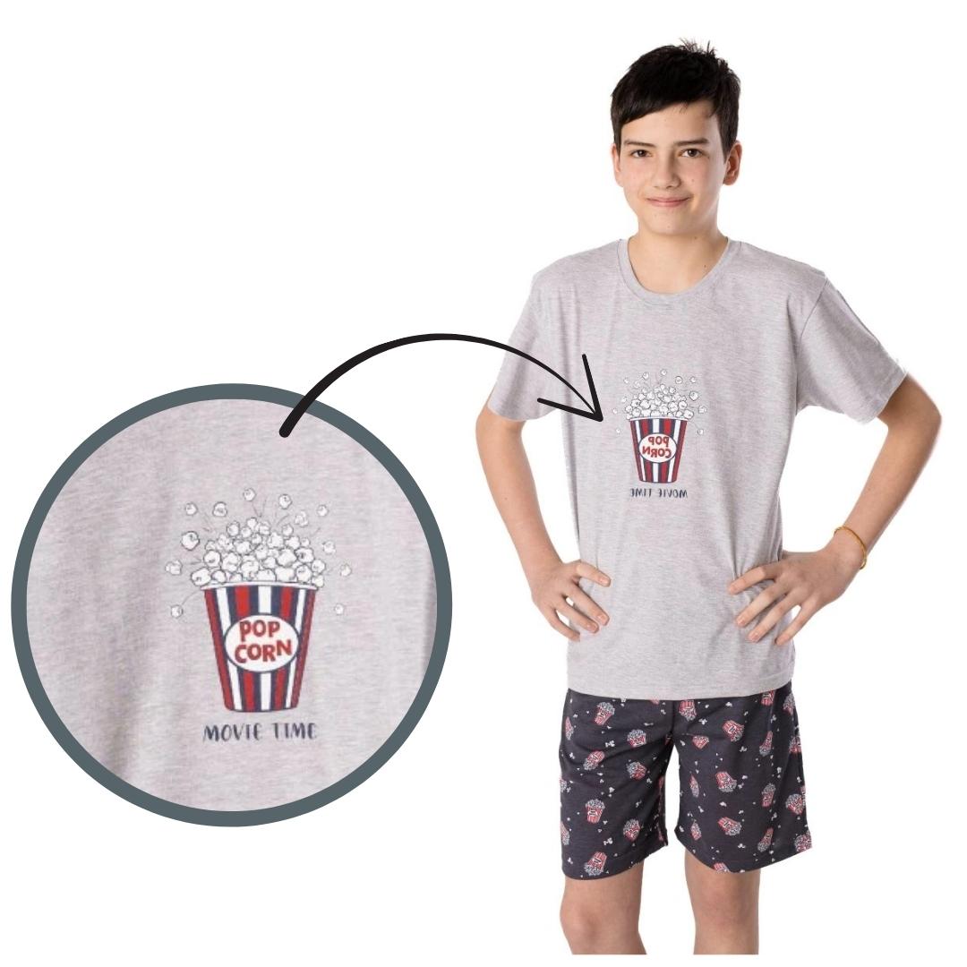 Chlapecké a pánské pyžamo Betty Mode letní šedé POPCORN