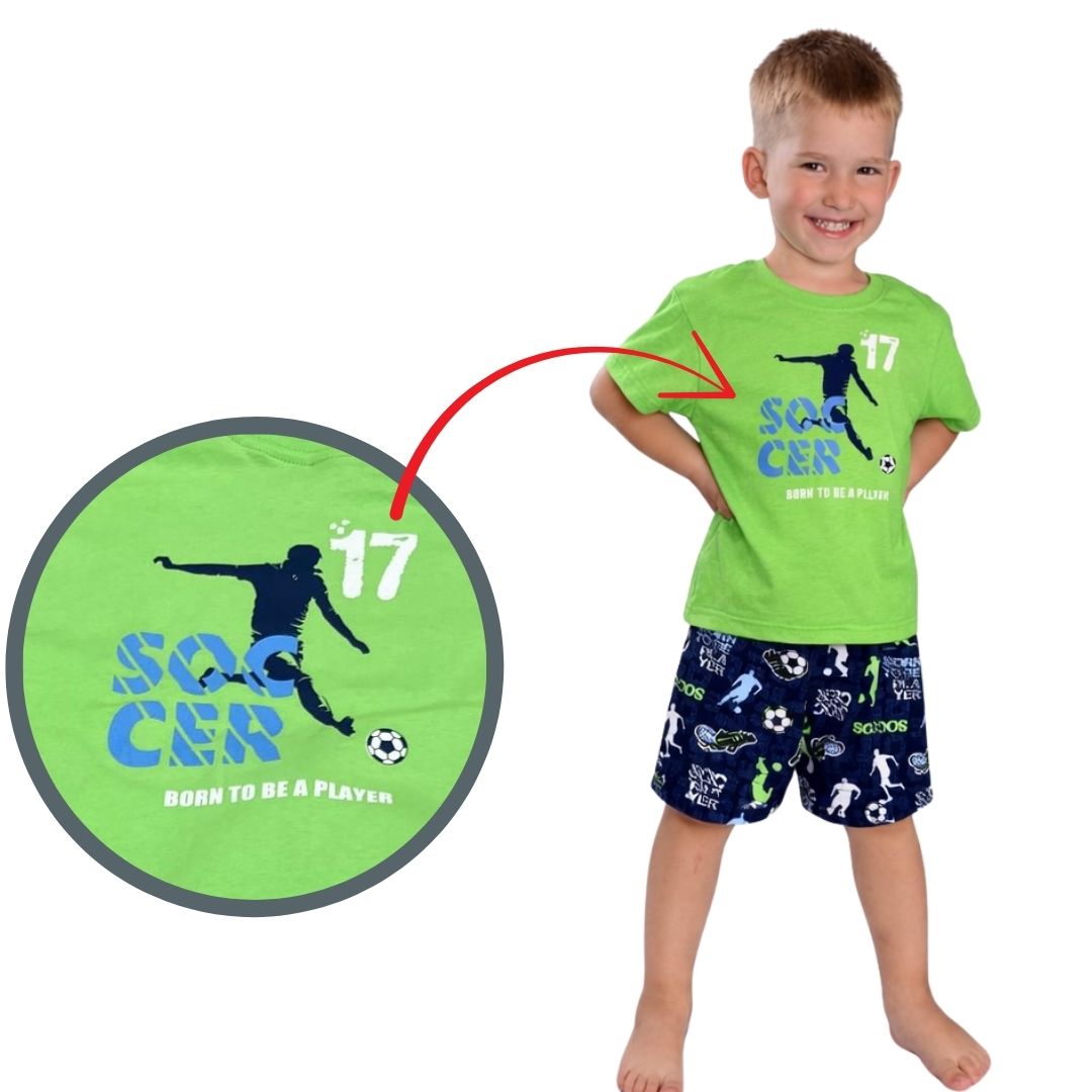 Objevte úžasné chlapecké letní pyžamo pro fotbalové nadšence od malé české firmy Betty Mode. Toto pyžamo je ušito s láskou přímo v České republice, a to z kvalitní 100% bavlny, která je příjemná na dotek a pohodlná na nošení.