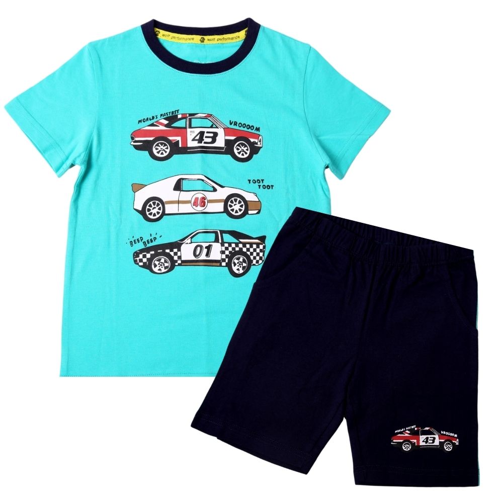 Chlapecké letní pyžamo Wolf pro teplé letní dny. Tričko s potiskem aut je doplněno jednobarevnými kraťasy.