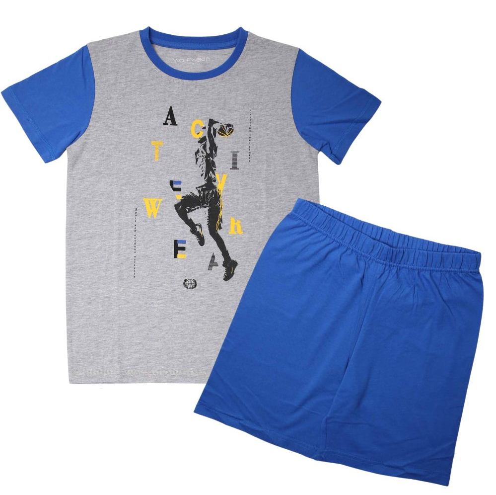 Chlapecké letní pyžamo Wolf pro teplé letní dny pro větší kluky. Tričko s potiskem je doplněno jednobarevnými kraťasy s potiskem.