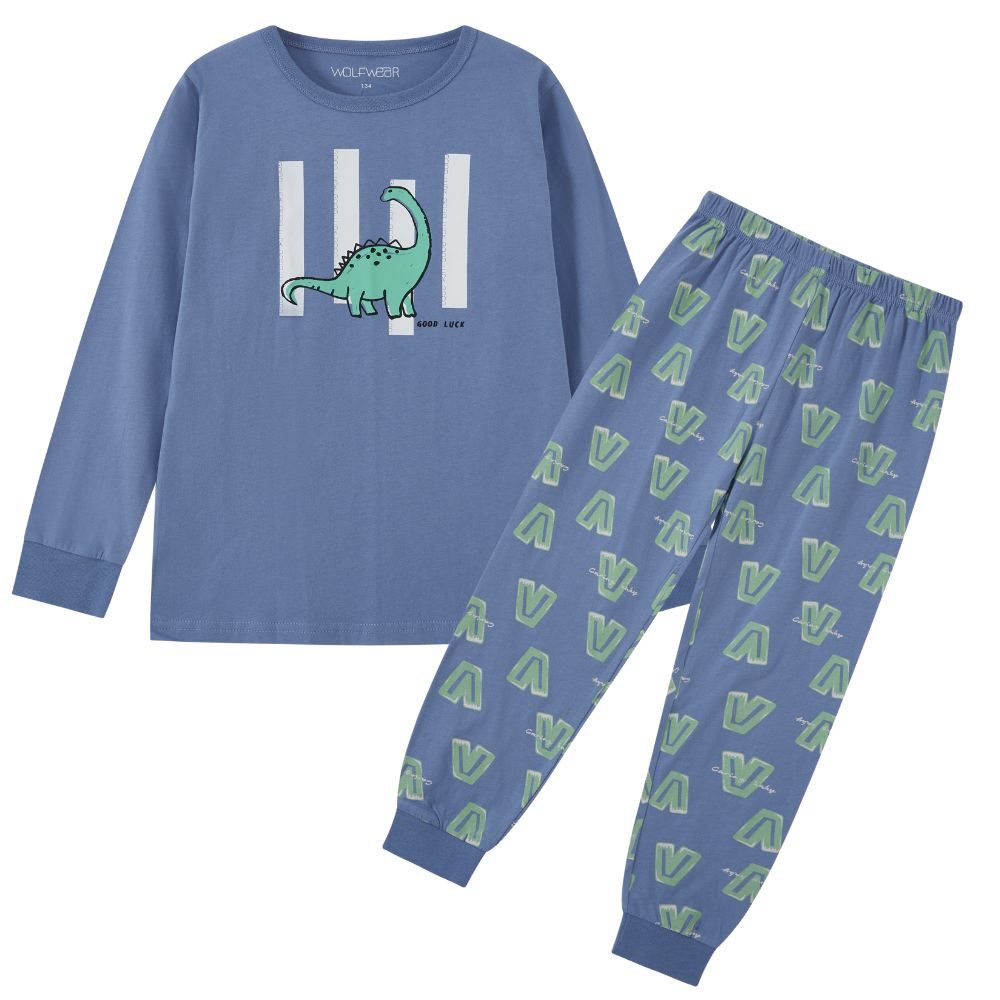 Krásné chlapecké bavlněné pyžamo Wolf z nové kolekce s dinem.