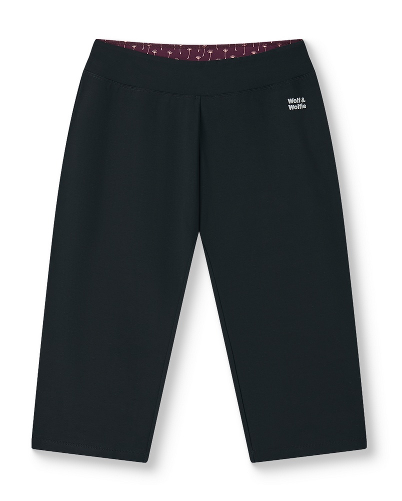 Dámské tříčtvrteční legíny Wolf jsou skvělé na běžné nošení, cvičení nebo pod šatovku. Vzorovaná část je zevnitř, proto nerozlišuji barvu podšívky. Můžete dostat buď bordo s pamepliškami, nebo černé s pampeliškami. Barva legín je černá