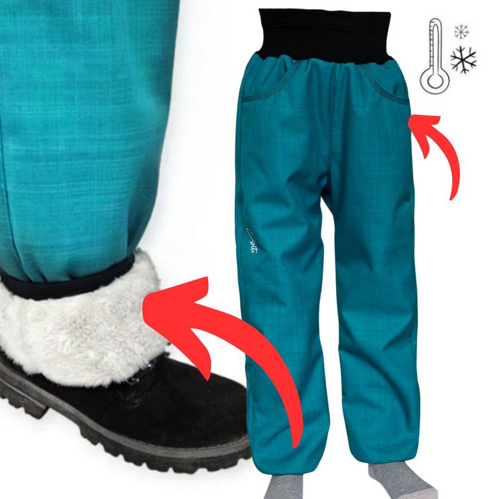 Dětské funkční softshellové kalhoty s umělým kožíškem petrolejové