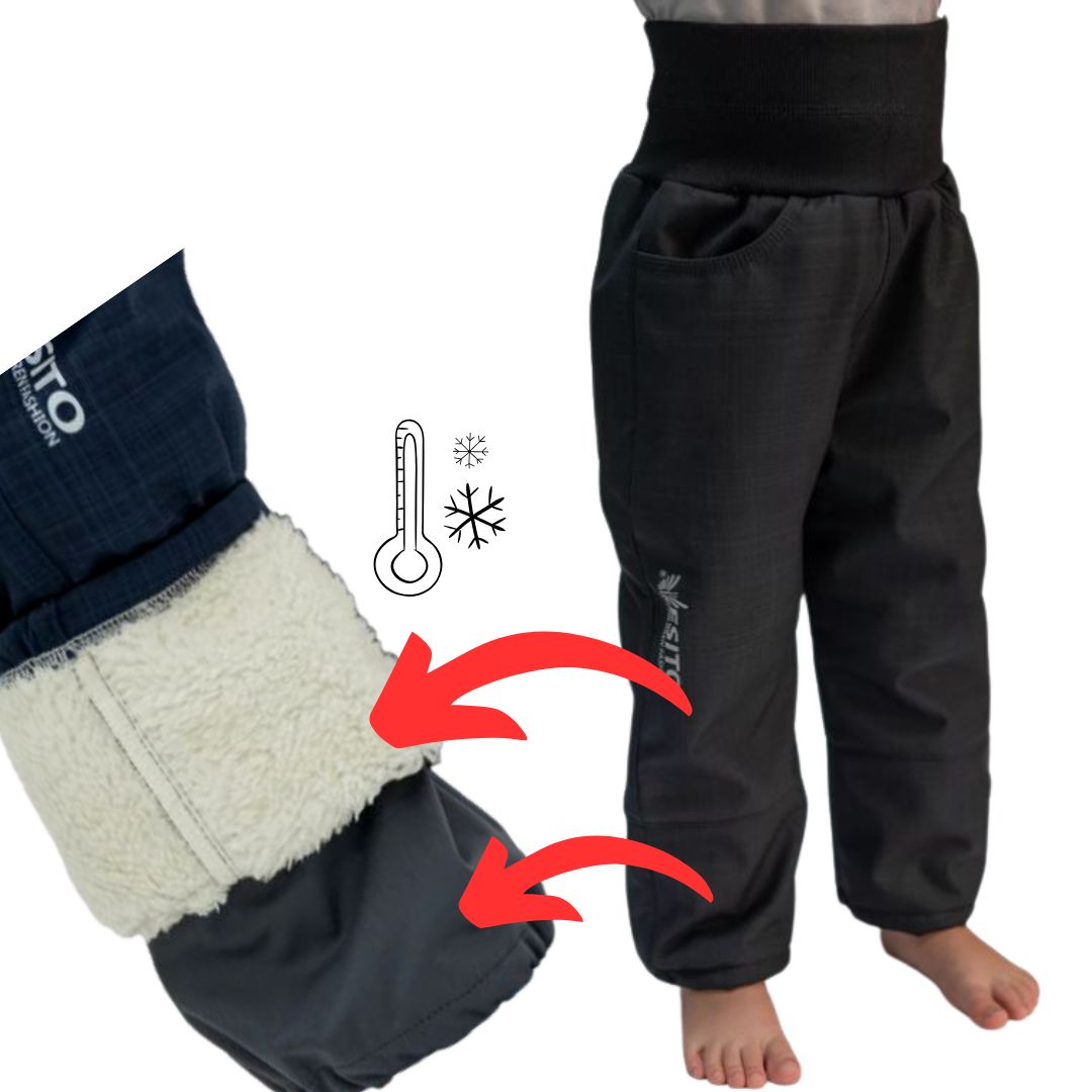 Dětské softshellové oteplovačky s umělým kožíškem na zimu