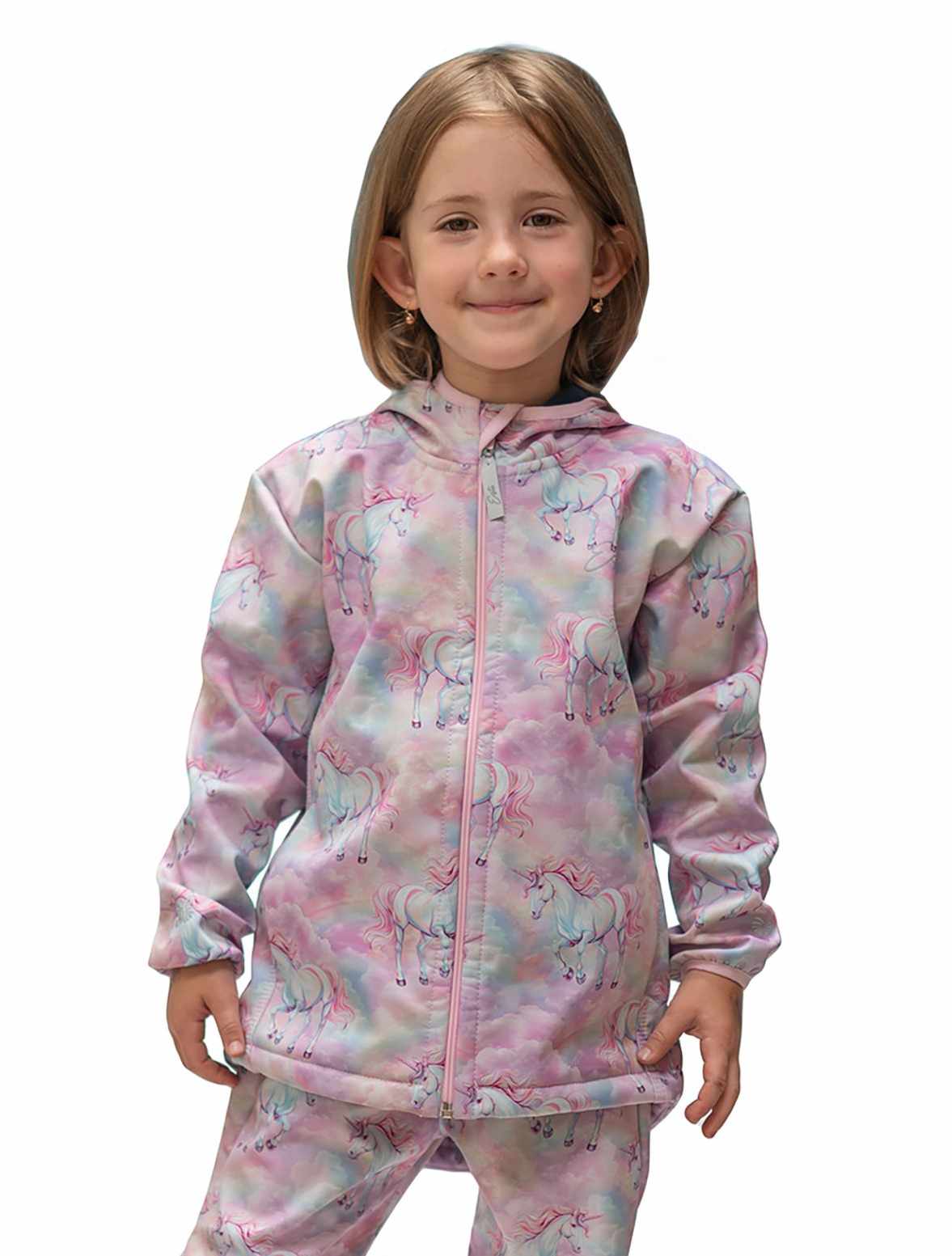 - Dívčí jarní/podzimní softshellová bunda Esito s fleecem duo jednorožec