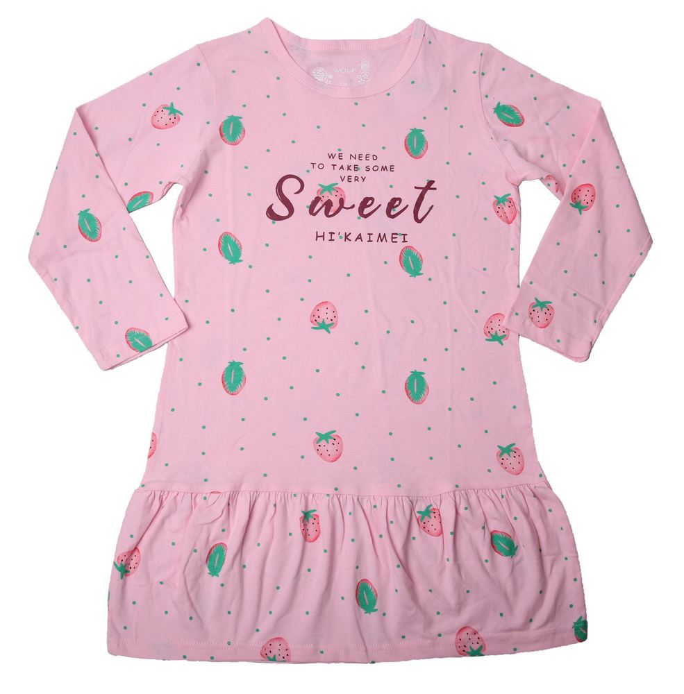Krásná bavlněná dívčí noční košile s dlouhým rukávem. V této noční košilce se vaší slečně budou zdát ty nejsladší sny.