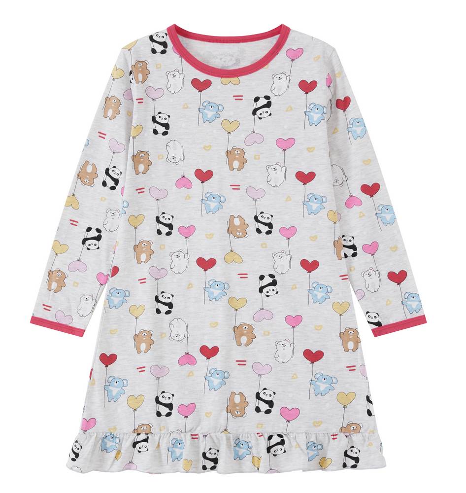 Krásná bavlněná dívčí noční košile s dlouhým rukávem. V této noční košilce se vaší slečně budou zdát ty nejsladší sny.