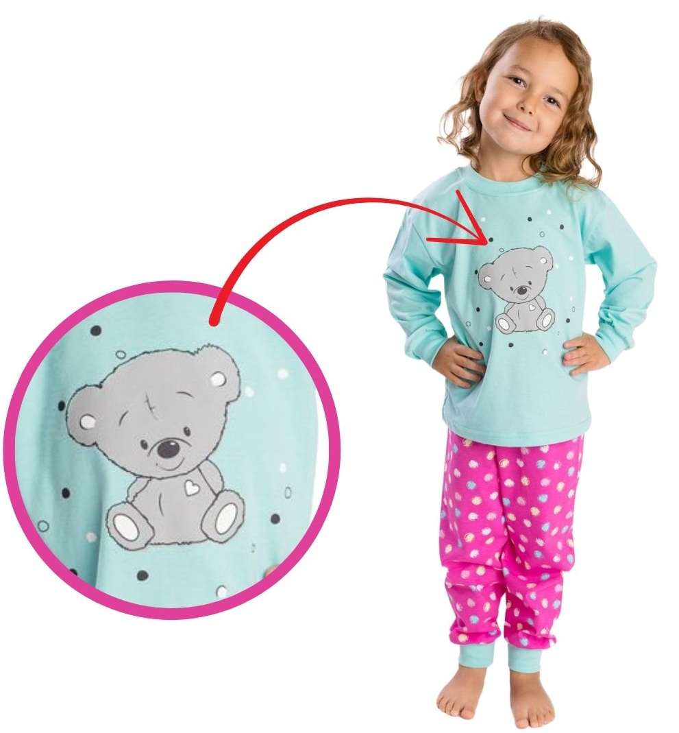 Dívčí pyžamo Betty Mode medvídek mátové / kalhoty tm. růžové
