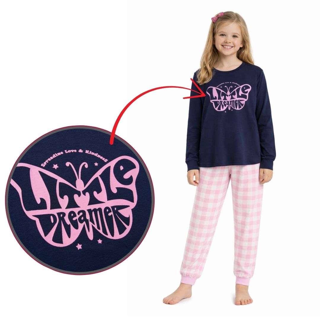 Krásné dívčí bavlněné pyžamo s potiskem.