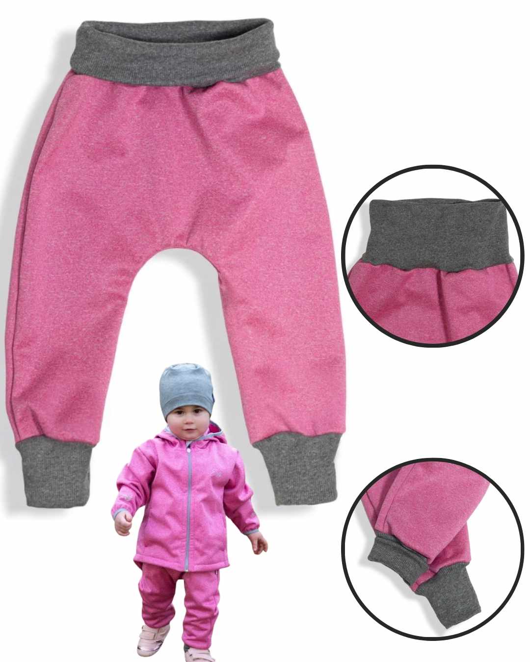 - Rostoucí střih – kalhoty, které se přizpůsobí - Díky vysokému bavlněnému nápletu v pase a na nohavicích s elastickou gumou kalhoty skvěle drží a přizpůsobí se růstu dítěte. Už žádné otlaky ani shrnování!