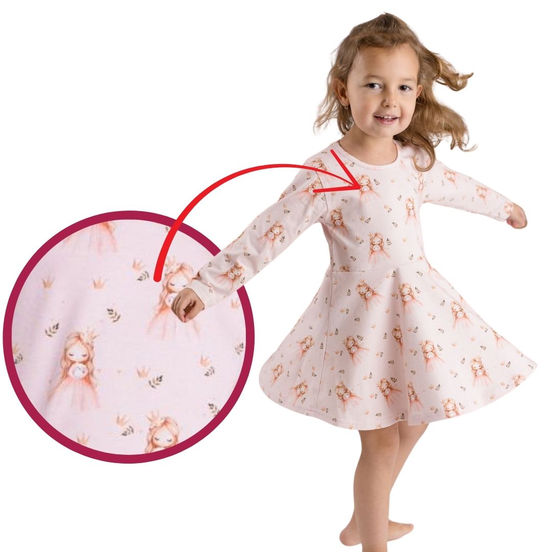 Krásné dívčí bavlněné šaty s kulatým výstřihem. Jsou celopotištěné, lehoučké a pružné. Využijete na oslavy, svatbu, slavnostní focení a další příležitosti. U stomečku bude vaše slečna zářit.