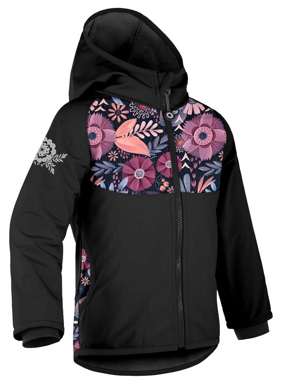 Dívčí softshellová bunda Unuo s fleecem kouzelné květiny
