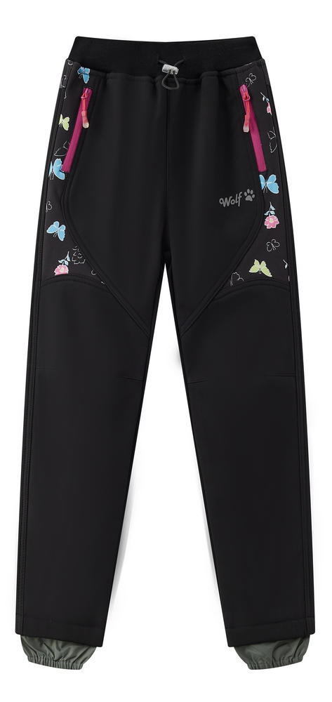 Dívčí softshellové kalhoty Wolf B2491s fleecovou podšívkou - černé