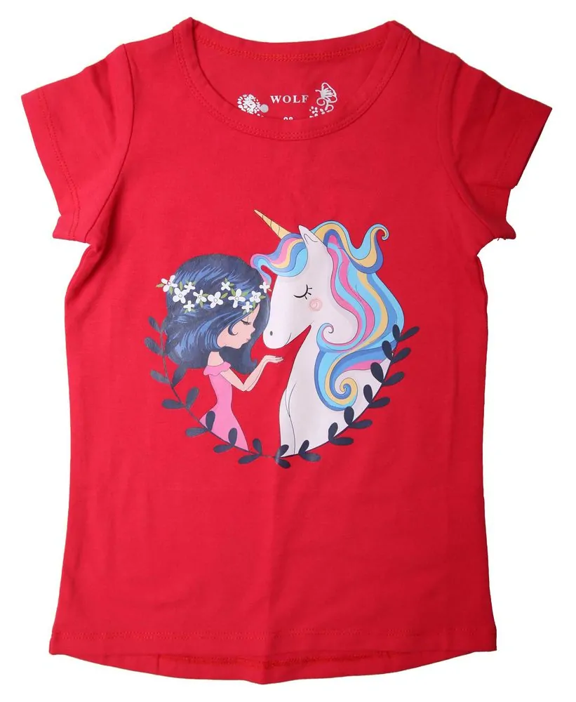 Krásné dívčí tričko s potiskem jednorožce . Je pružné a hezky se nosí.