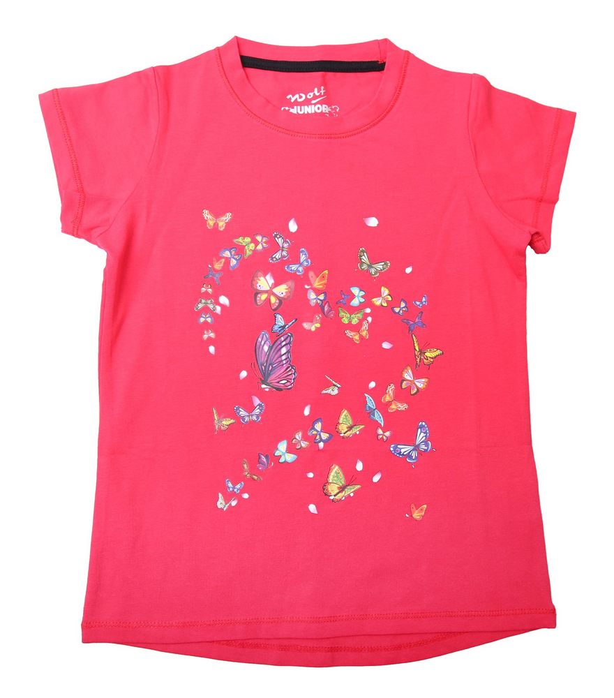 Krásné dívčí tričko s potiskem motýlků. Je pružné a hezky se nosí.