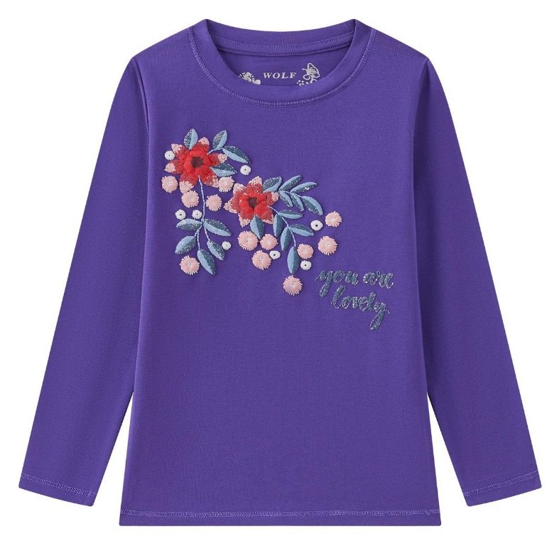 Krásné dívčí triko s dlouhým rukávem. Vpředu potisk, který dokonale imituje výšivku .