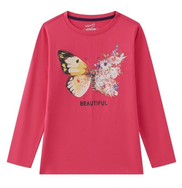 Krásné dívčí triko s krásným potiskem a dlouhým rukávem.