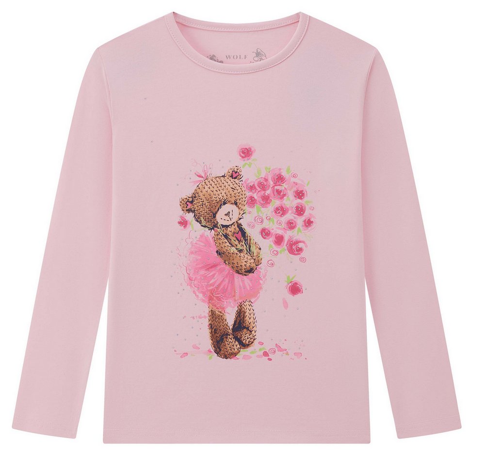 Krásné dívčí triko s dlouhým rukávem a potiskem medvídka.