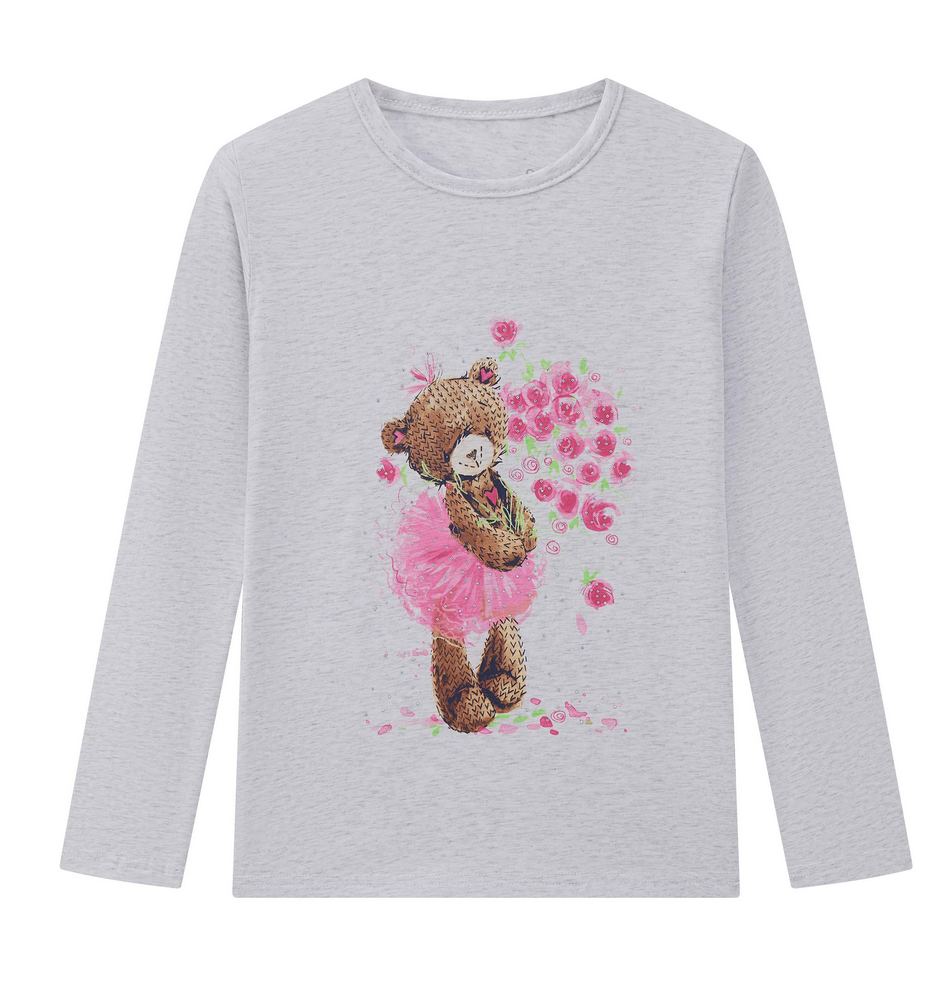 Krásné dívčí triko s dlouhým rukávem a potiskem medvídka.