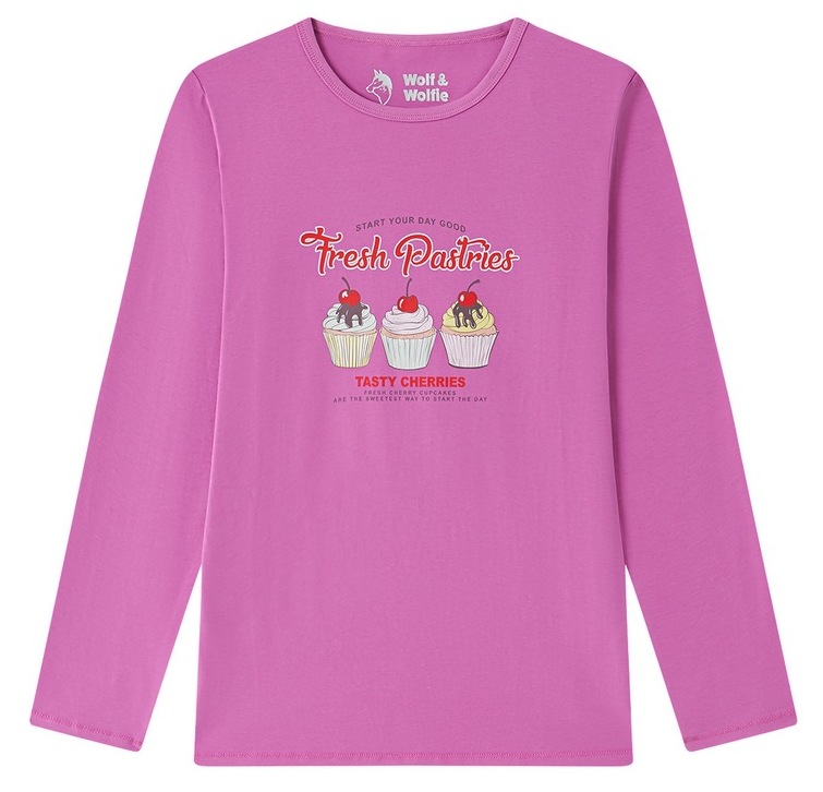 Krásné dívčí triko s krásným potiskem a dlouhým rukávem.