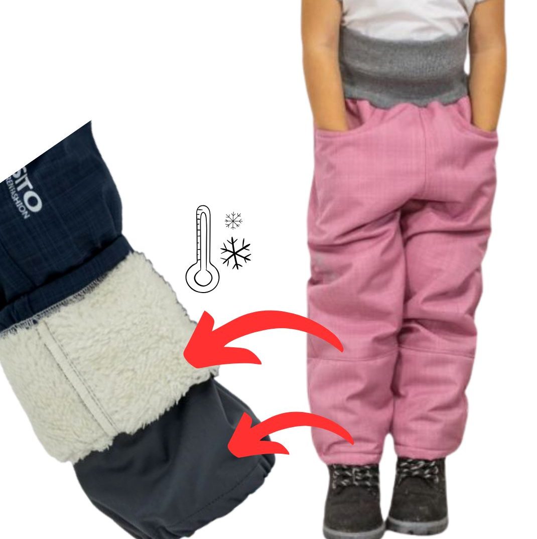 Dětské softshellové oteplovačky s umělým kožíškem na zimu