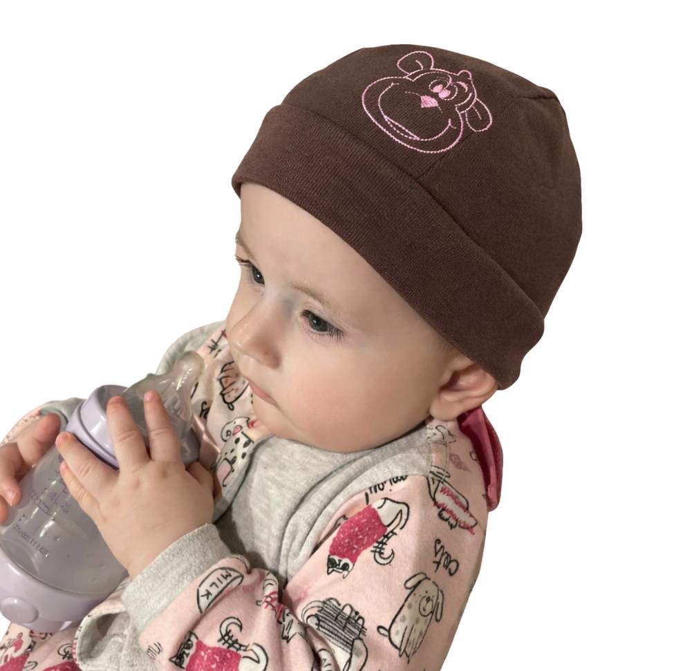 Jarní pirátka hnědá s růžovou opičkou obvod 45-49 cmSkladem 3 ks149 Kč/ ks123,14 Kč bez DPH
