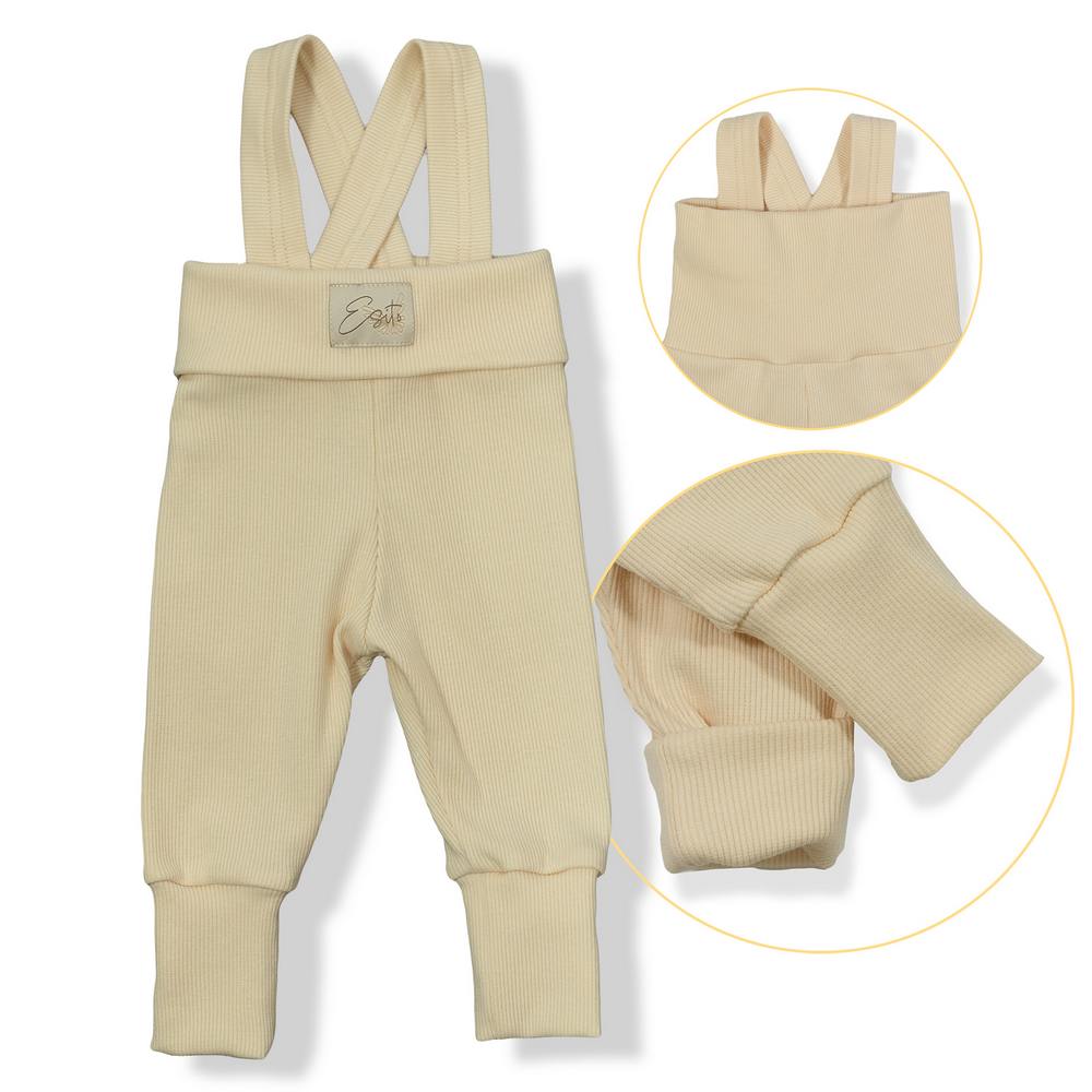 Rostoucí žebrované dětské tepláčky s kšandami smetanové