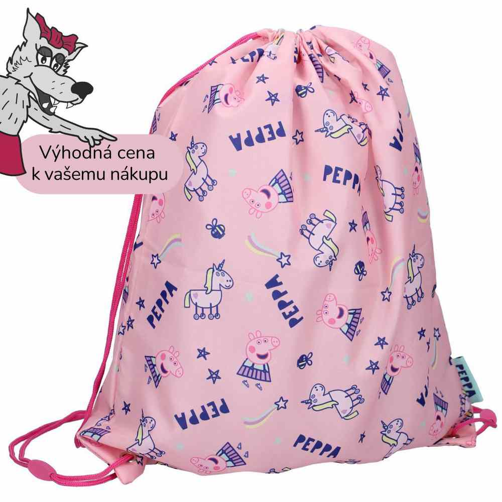 Stylový sportovní vak s motivem roztomilého prasátka Peppy je skvělým pomocníkem pro každodenní použití. Na tělocvik, přezůvky, nebo jako lehký batůžek pro volný čas.